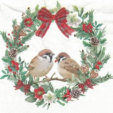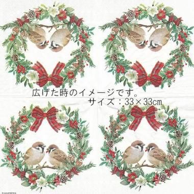 AM-866: ペーパーナプキン Sparrows in wreath - AM866<5枚入>